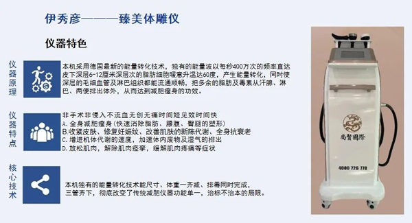 特點(diǎn):不打針,不吃藥,舒服無痛苦,解決顧客對(duì)減肥的厭惡感,恐懼感,躺著睡覺就可以減肥,無需絕食,三餐正常吃,減肥的同時(shí)可以調(diào)節(jié)三高,去除體內(nèi)濕寒,去脹氣,效果立桿見影,今天用今天掉秤,一療程可瘦8-15斤。