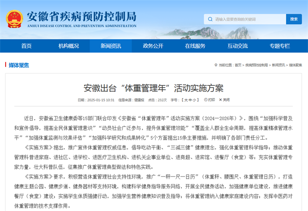 《安徽省“體重管理年”活動實(shí)施方案》